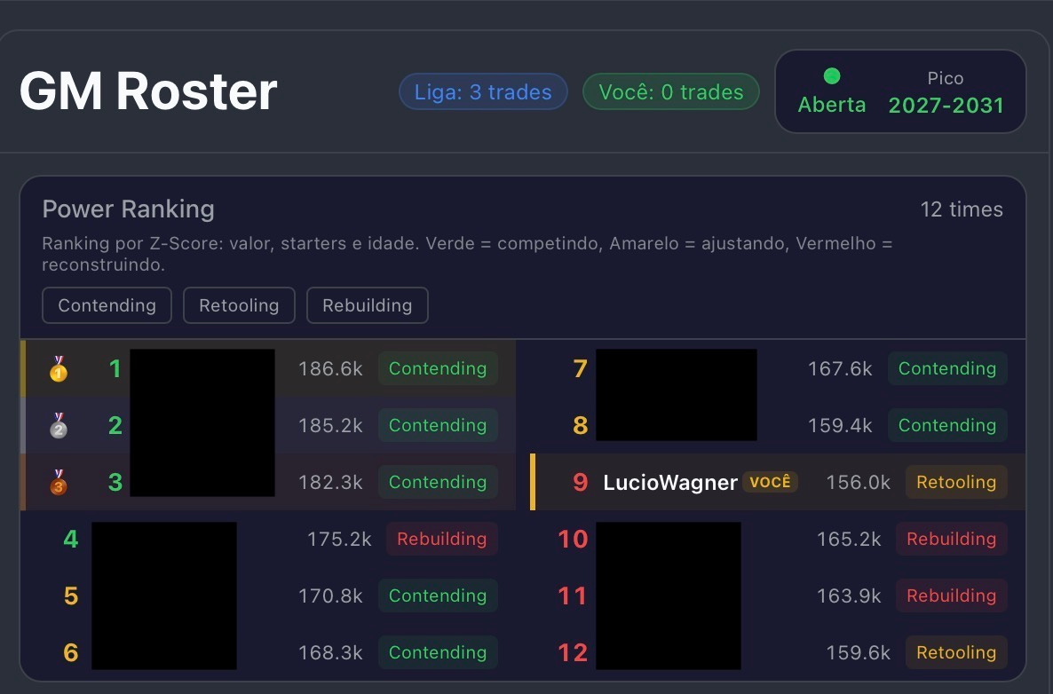 1. Analise sua equipe no Power Ranking: Uma movimentação na FA pode ter deixado seu elenco desequilibrado. Se o seu QB titular perdeu seu principal alvo, seu Power Ranking pode ter caído, sinalizando que sua Janela Competitiva mudou.
